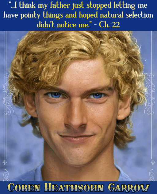 Dangerously naive with a deep-seated sense of fairness and his own share of trauma, Coben’s public image as the oldest Garrow son is one of an aloof, cold loner – which couldn’t be farther from the truth. Coben loves people; he just has no social skills, something he seems to have unfortunately picked up from his late uncle. He’s more likely to point out the awkward tension between a recently and secretly separated couple than he is to keep his mouth shut, and he’s prone to taking people at face value unless he has some actual reason to do otherwise – which would be fine if half the country didn’t have reason to want him dead. He’s quiet and thoughtful much of the time, although sometimes all that time spent being thoughtful leads him to ludicrous conclusions that are charming if not altogether helpful.